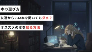 読書 【本の選び方】友達から本を教えてもらうのは意外と大変。 友達におすすめの本を聞いたけど、内容が難しくて挫折してしまった 自分にぴったりの本を友達に教えてもらうコツってあるの すすめてもらった手前、読まないといけないというプレッシャーがしんどい…友達に「おすすめの本ありますか~」と聞くことがありま... 2025.12.27 読書