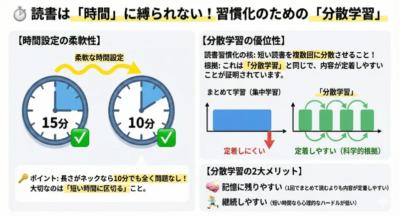- 読書時間を分散させて習慣化すること