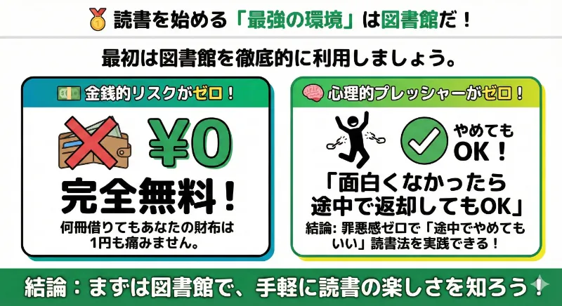だからこそ、最初は図書館を徹底的に利用しましょう。