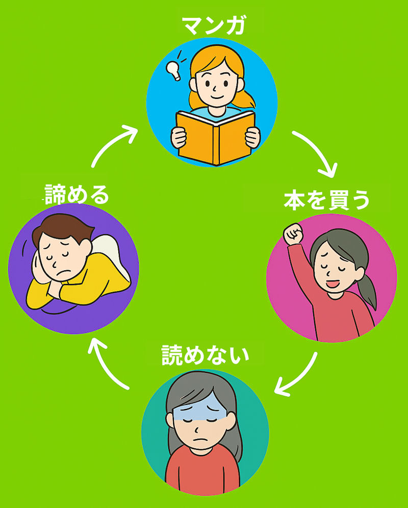 やる気がなくて、過去に読書に対する苦手意識が生まれたようね。