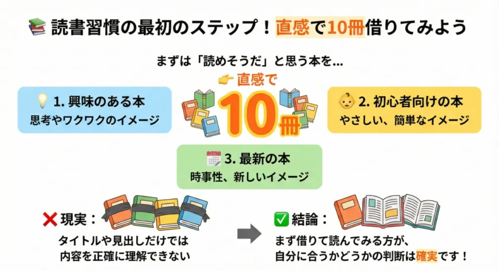 【STEP 1】まずは「読めそうな本」を10冊、直感で選んでみる