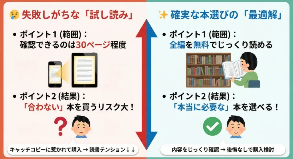 - 試し読みだけでは、本当に自分に合う本かわからない