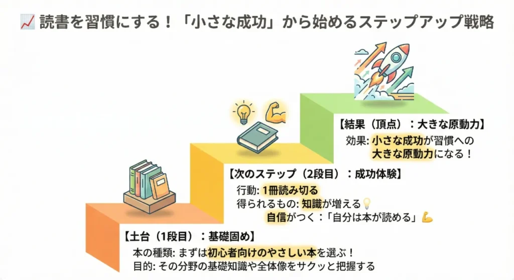 簡単な本から読み始める最大のメリットは、「読めた」という成功体験を確実に積み重ねられることです。