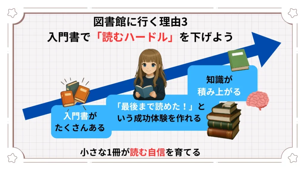 図書館なら、「ハードルの低い本」を気軽に無料で選べます。