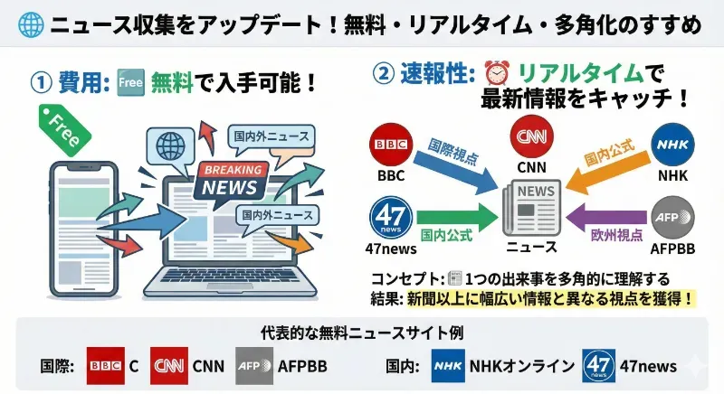 今ではインターネットを使えば、国内外のニュースを無料で、しかもリアルタイムで入手できます。