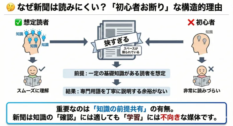 新聞はすでに一定の基礎知識を持っている読者を前提に書かれています。